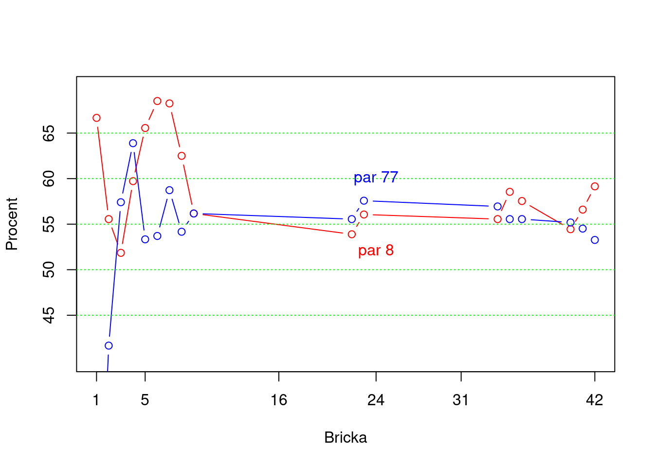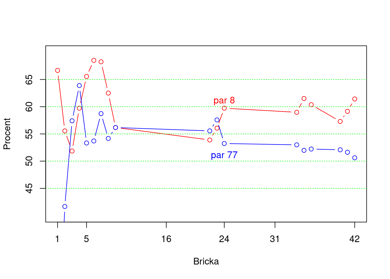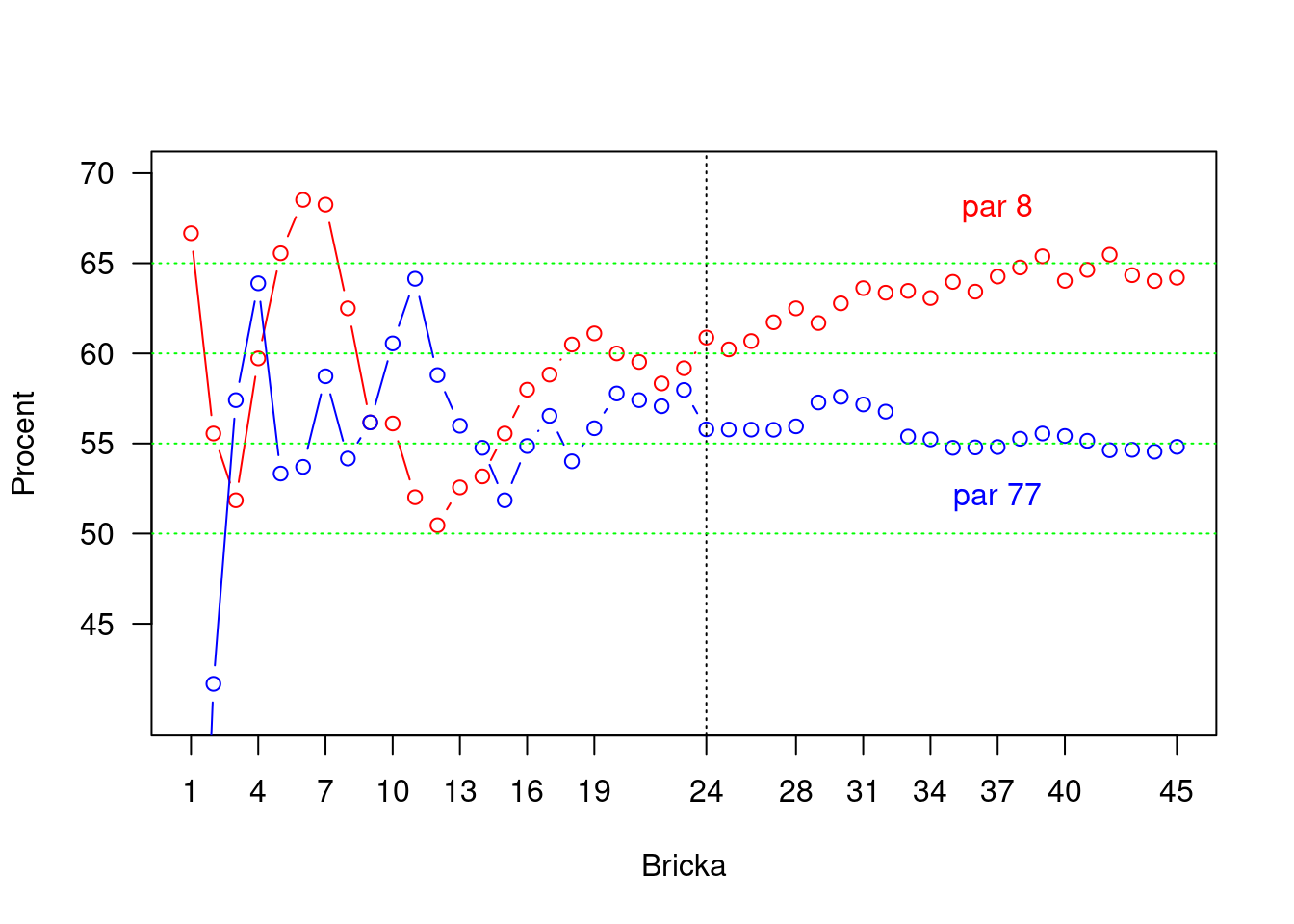 Här är det fråga om utklassning: Par 8 går 67 procent på den sista tredjedelen, medan par 77 går ynkliga 49.3 procent!